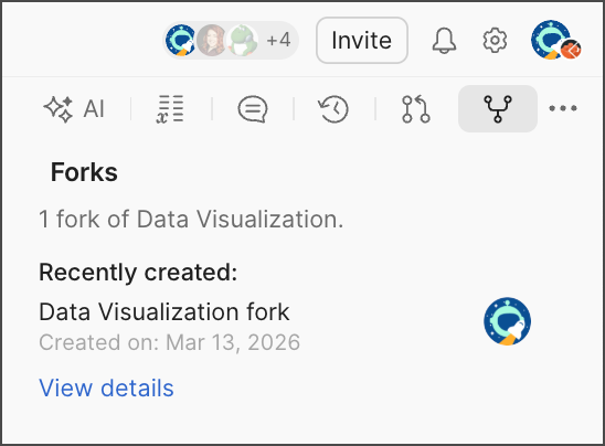 You can also create a fork by hovering over the element in the sidebar and selecting Options icon View more actions next to its name, then selecting Fork.