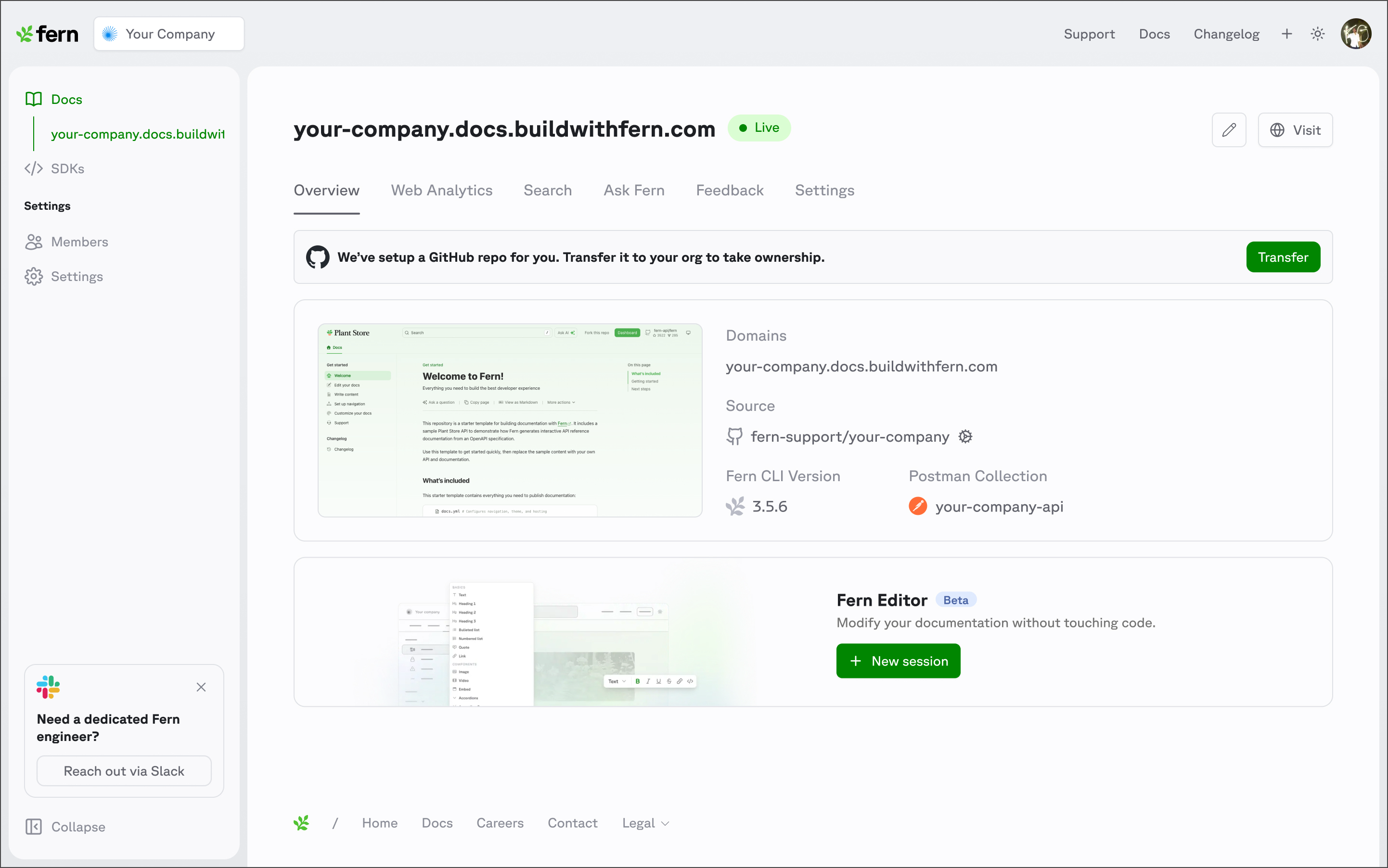 - Enable Ask Fern — Set up AI-powered chat for your documentation.