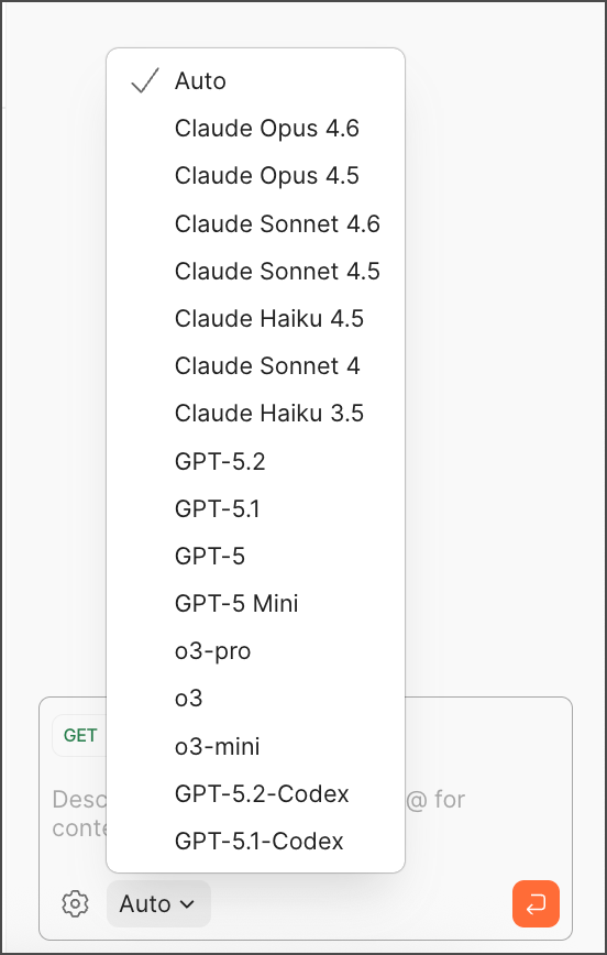 To switch your AI model, click the model dropdown (Auto by default) and select a specific AI model.