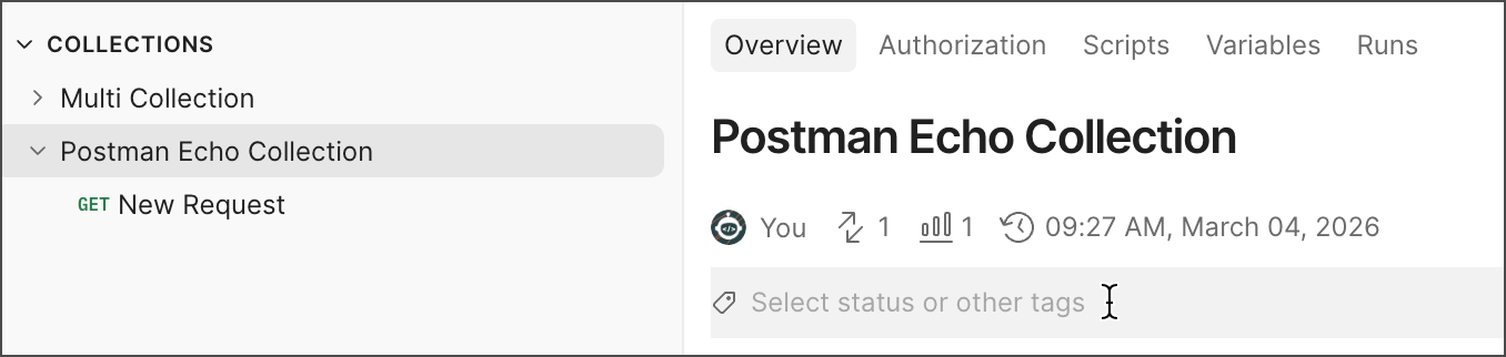 Status tags are available with Postman Enterprise plans. You can apply status tags to internal collections.