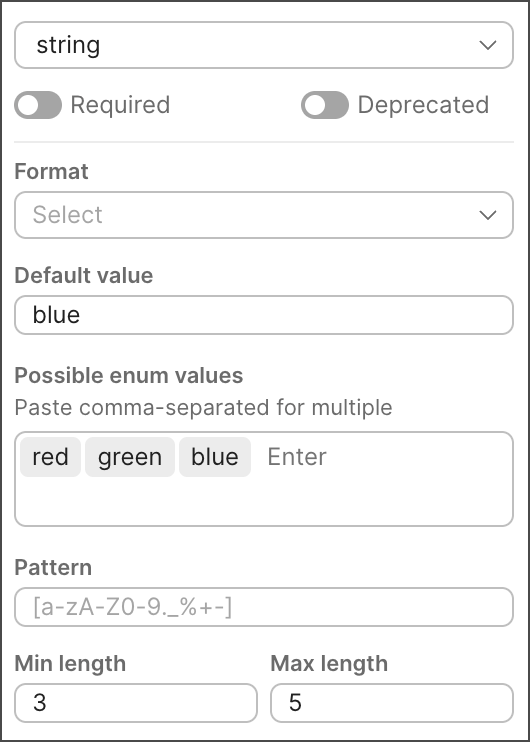 - Format — Select the data format for the string (for example, date, time, or email).
