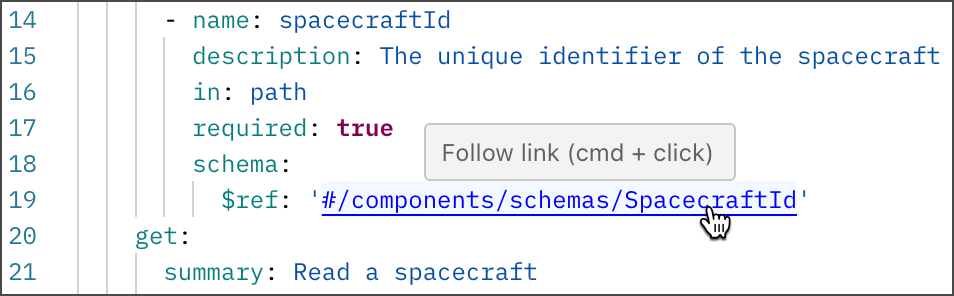 To jump to a referenced component, hover over a #ref component and click the component while selecting ⌘ or Ctrl.