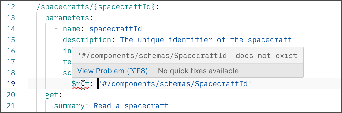 Postman automatically identifies syntax errors as you edit your API specification. Errors can include missing fields, malformed field names, wrong data types, wrong nesting, or other issues. For Postman to be able to check your specification elements, you must use valid JSON or YAML.