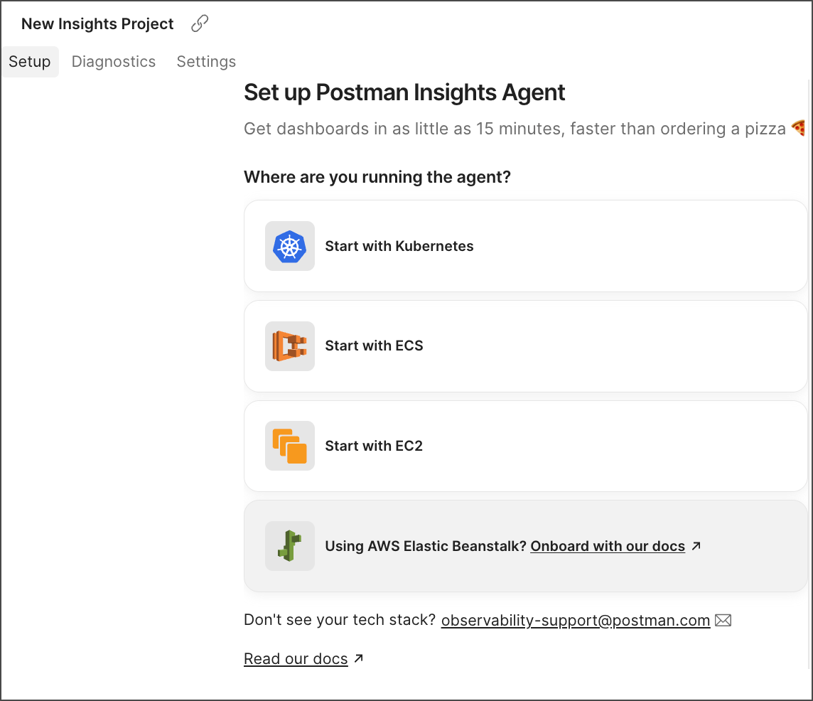 The Postman Insights Agent supports the following tech stacks: