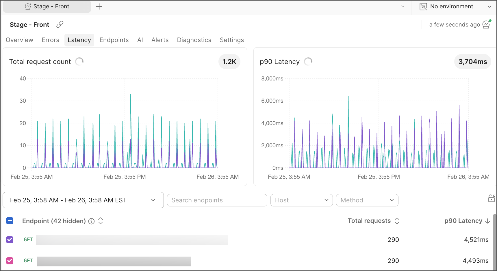 Sort your endpoints by Total requests or p90 Latency.