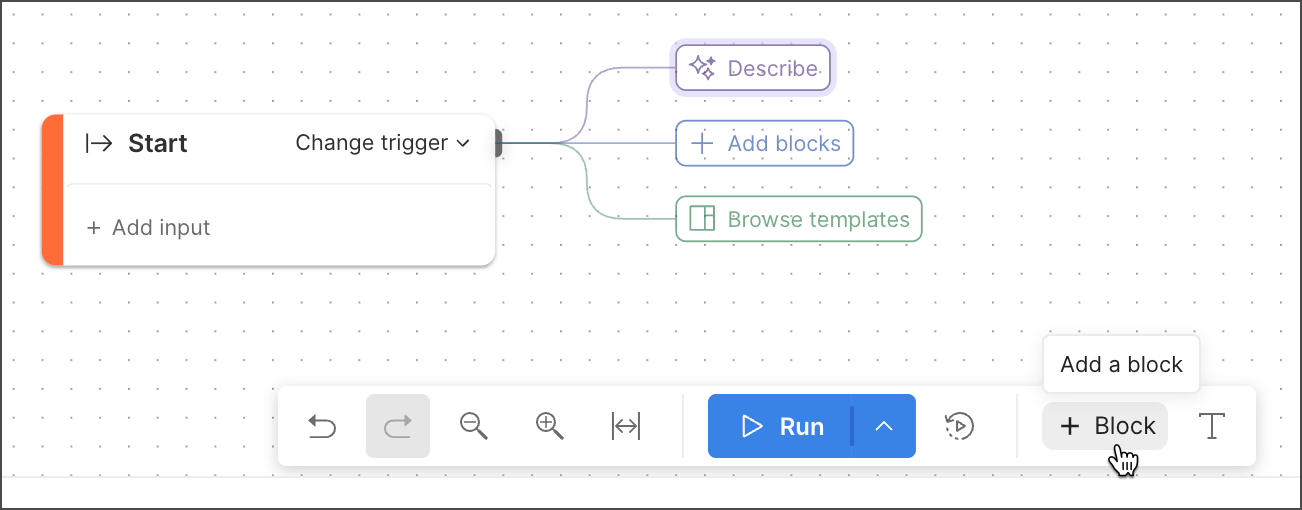 Describe - Opens agent mode where you can describe and build a flow with AI.